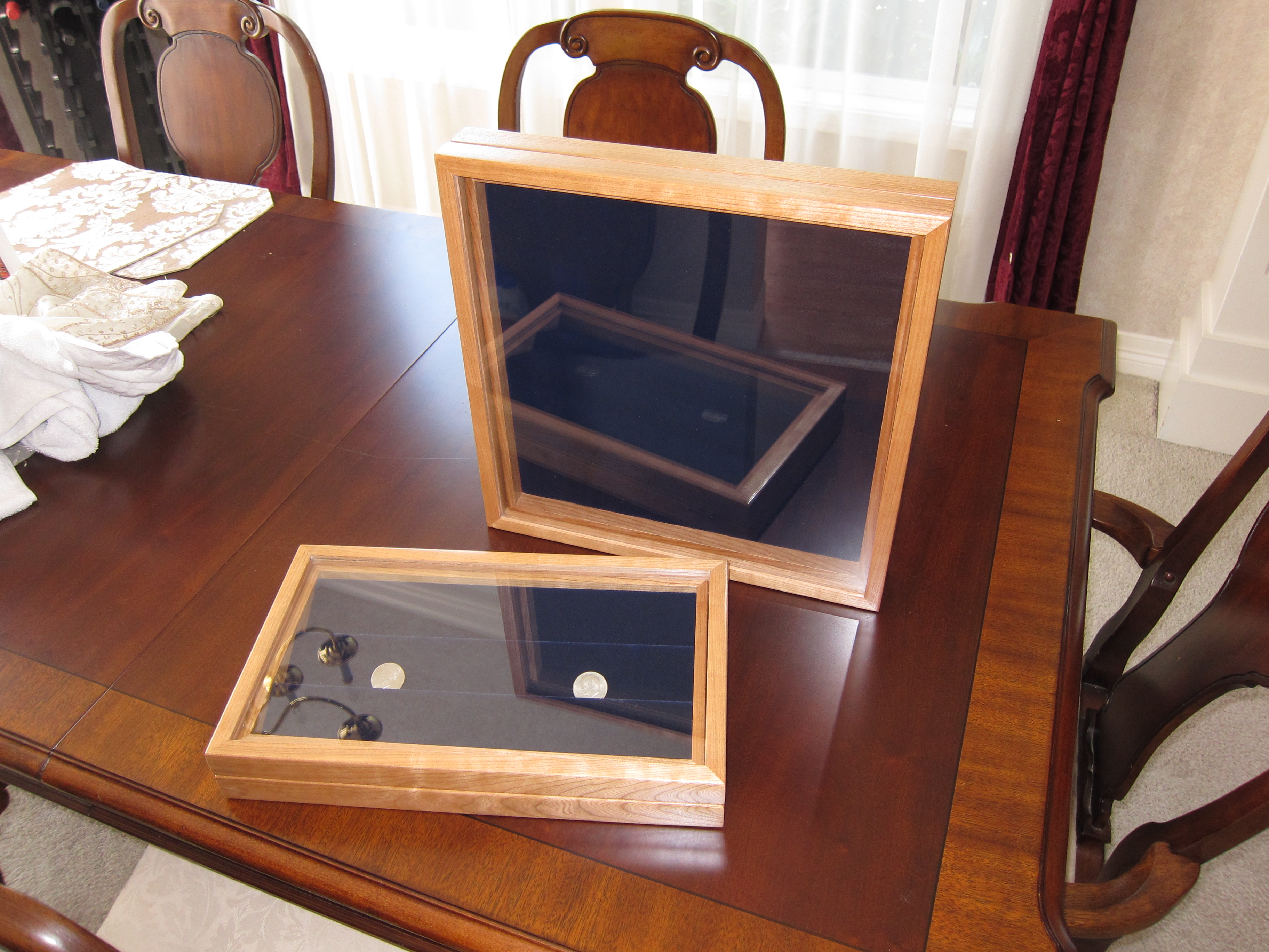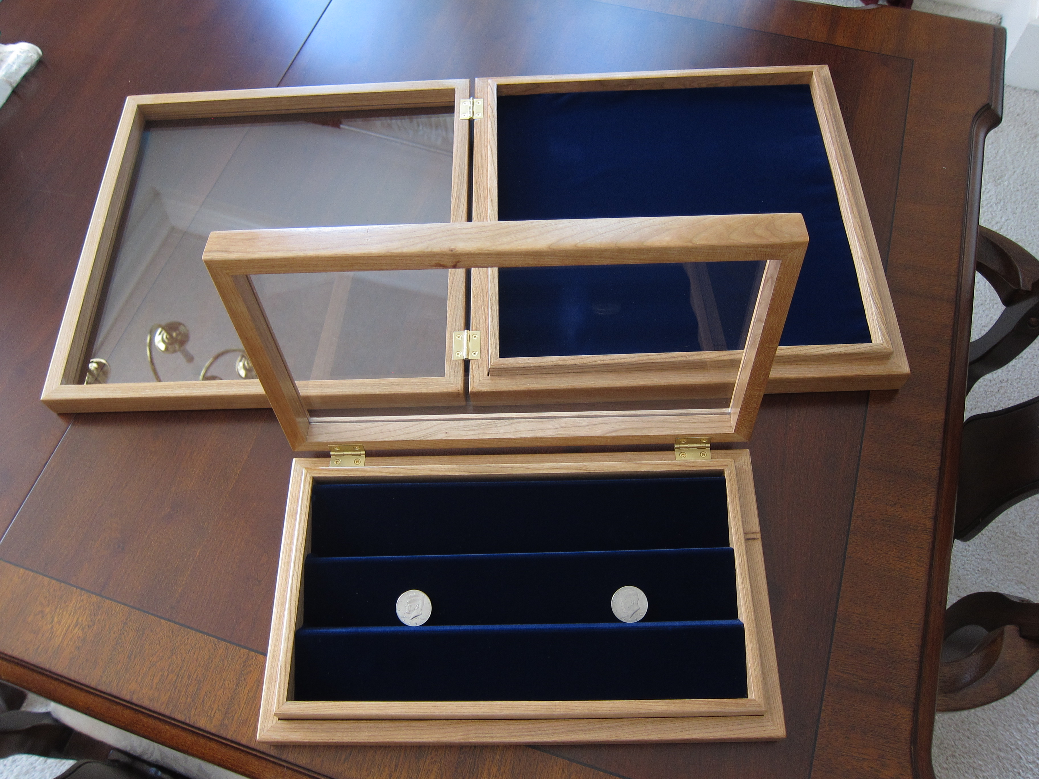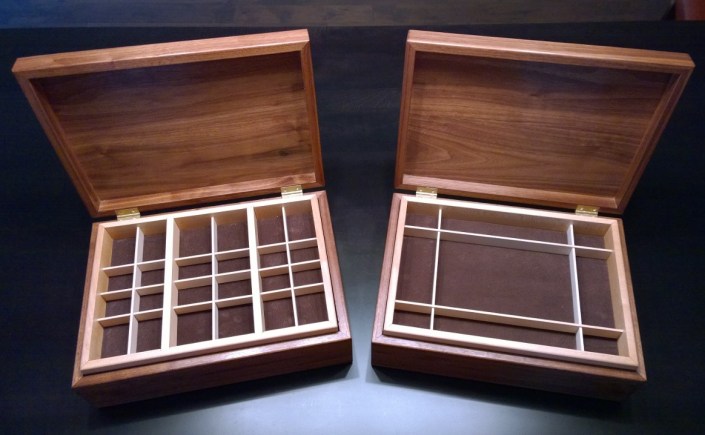 Dimensions: 11-3/8” wide, 8-1/2” deep, 3-5/8” tall. The walnut is about ½” thick. The lower tray is 1-1/8” deep inside, and the upper tray is 1-1/4” deep.