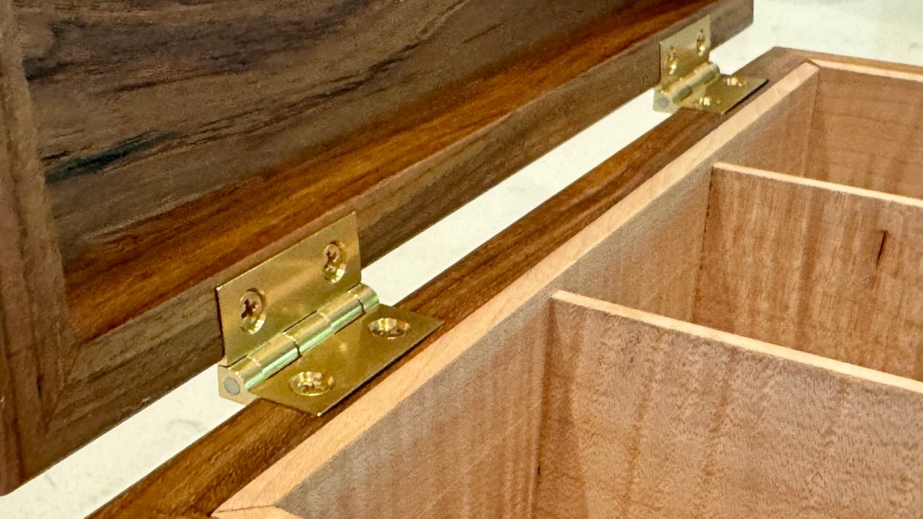 I used Brusso stop hinges (here)—some of the finest hardware available—to ensure smooth, precise movement and lasting durability.